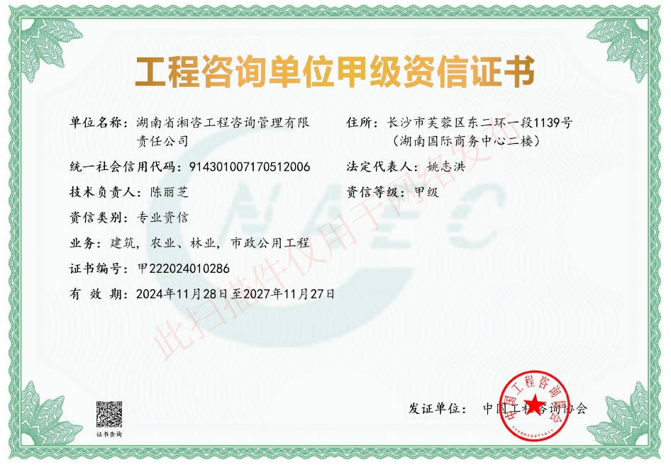 喜報(bào)|湘咨管理喜獲市政公用工程施工總承包資質(zhì)【貳級(jí)】
