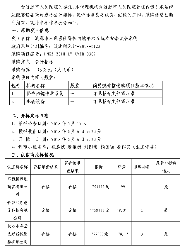 漣源市人民醫院脊柱內鏡手術系統及配套設備采購 中標結果公告