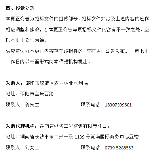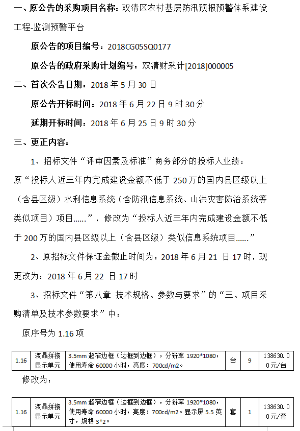 雙清區農村基層防汛預報預警體系建設工程-監測預警平臺公開招標更正公告