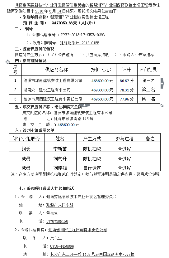 智慧湘軍產業園西南側擋土墻工程 競爭性磋商成交結果公告