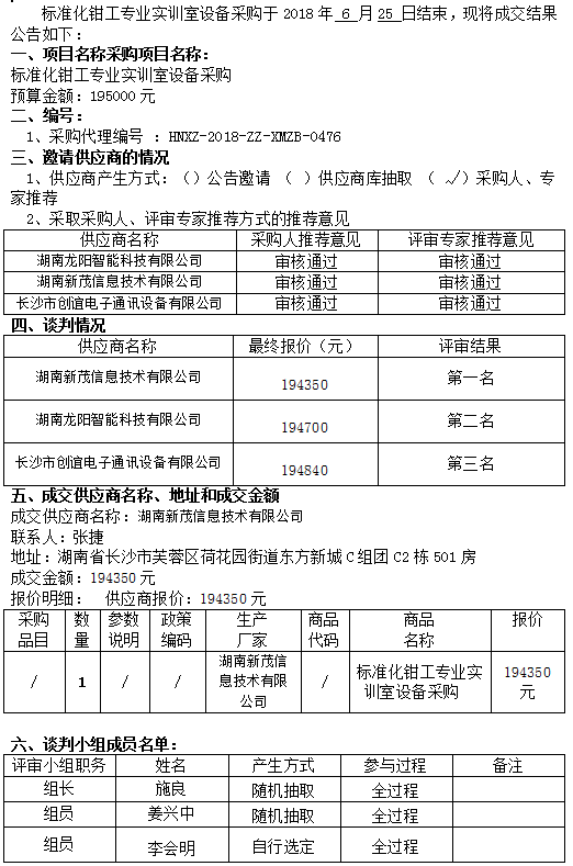 標準化鉗工專業實訓室設備采購競爭性談判成交公告