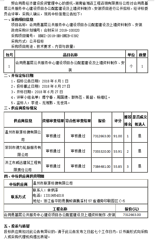 會同縣基層公共服務中心建設項目辦公配套建設及上墻資料制作、安裝 公開招標中標公告