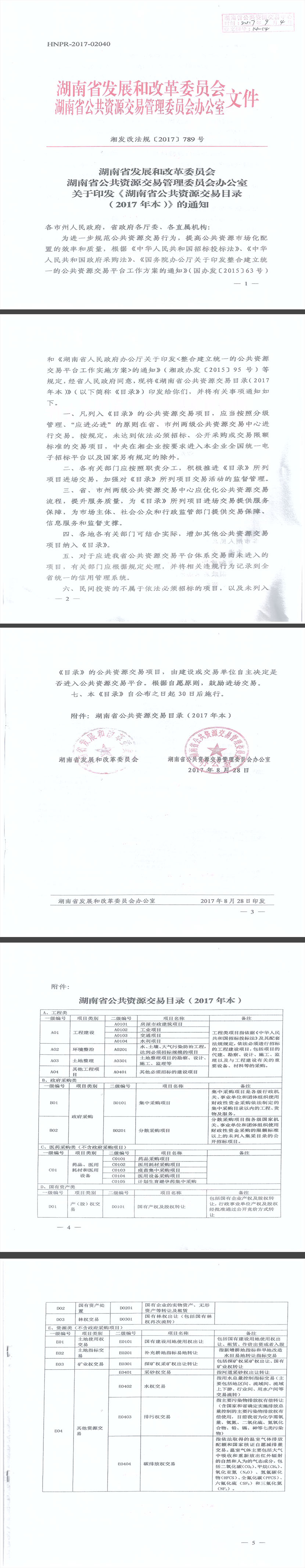 湖南省發展和改革委員會湖南省公共資源交易管理委員會辦公室關于印發《湖南省公共資源交易目錄(2017年本)的通知湘發改法規[2017]789號