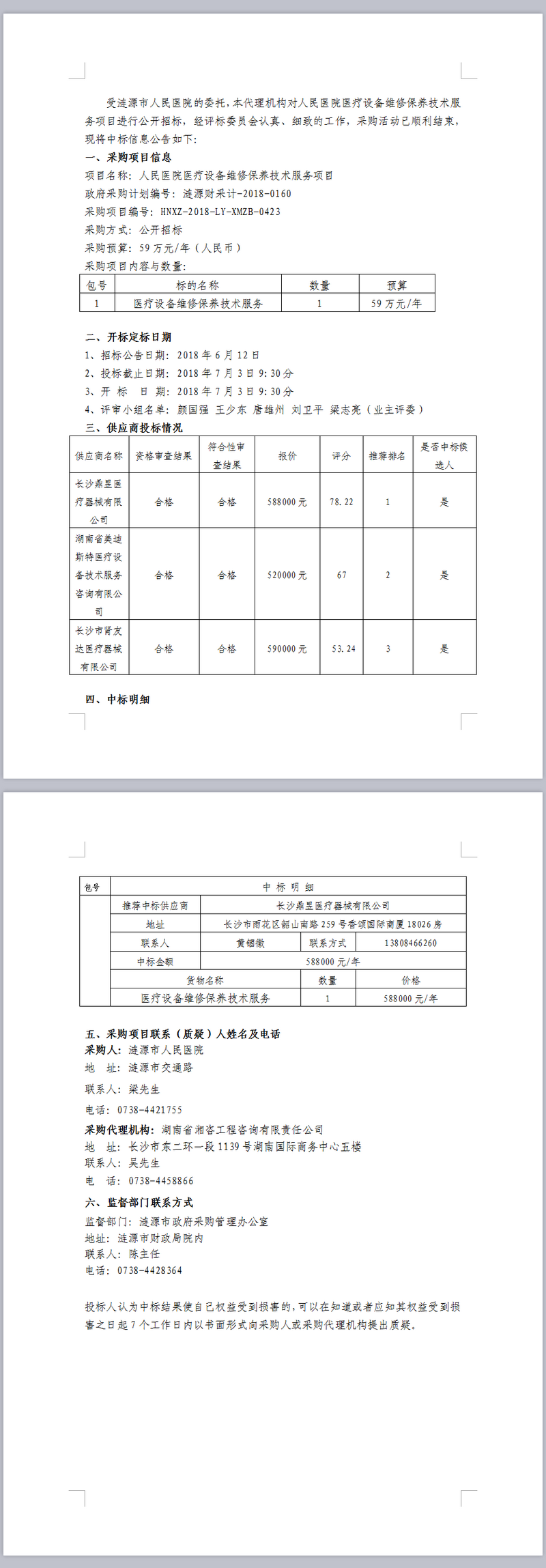 人民醫(yī)院醫(yī)療設(shè)備維修保養(yǎng)技術(shù)服務(wù)項(xiàng)目 中標(biāo)結(jié)果公告