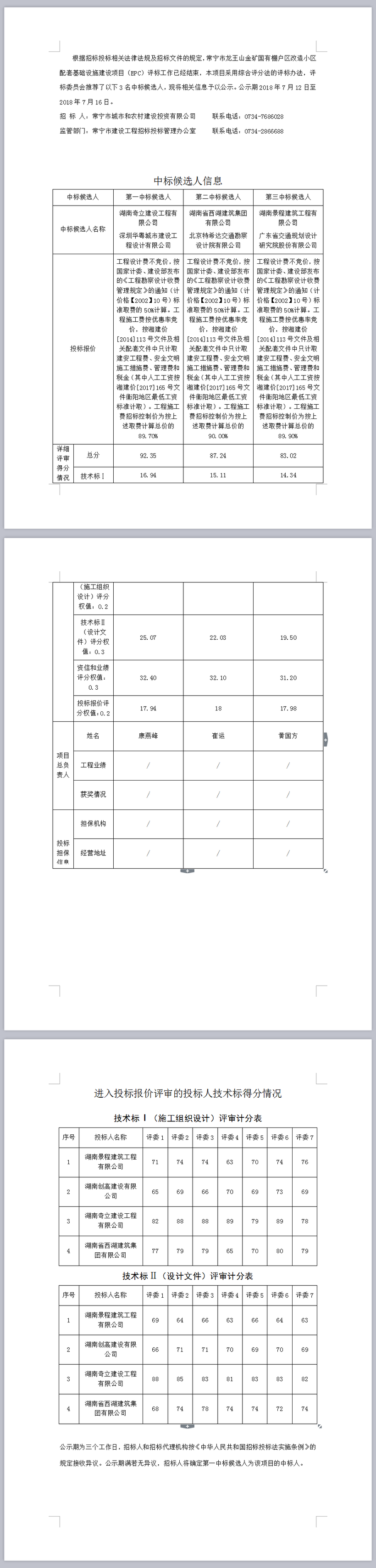 常寧市龍王山金礦國有棚戶區改造小區配套基礎設施建設項目(EPC)中標候選人公示