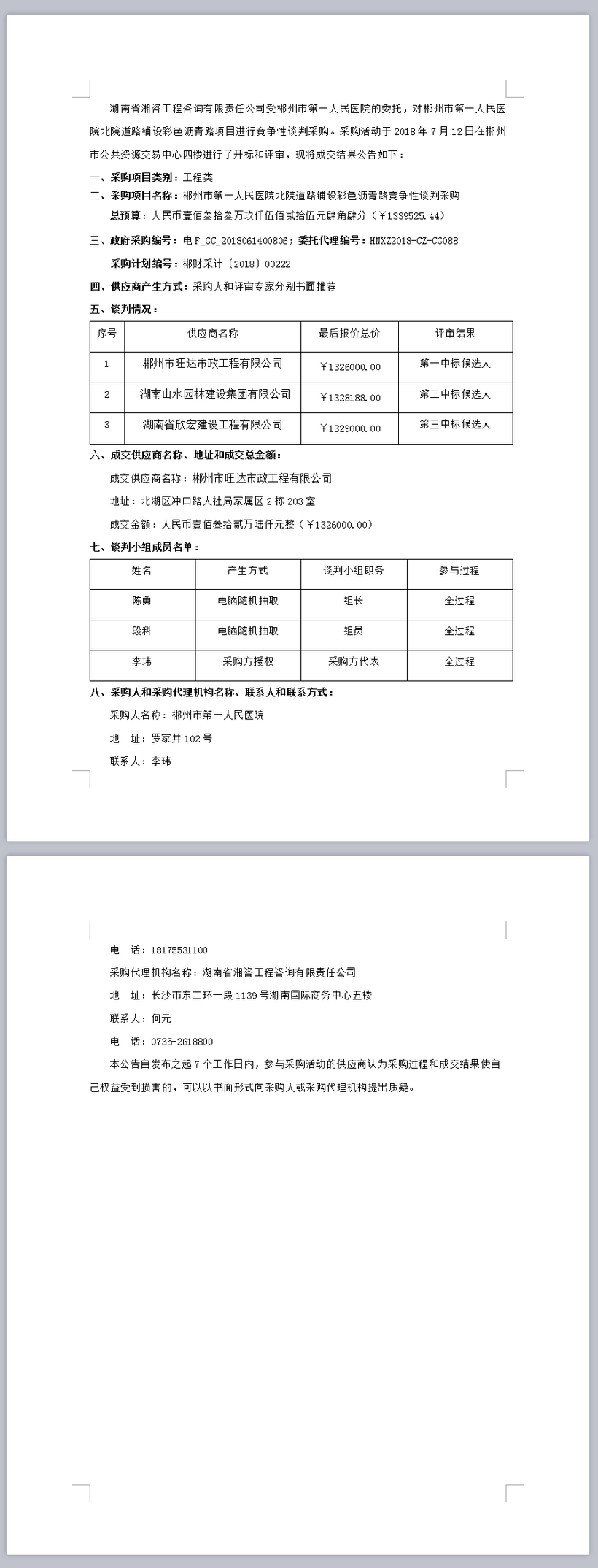 郴州市第一人民醫(yī)院北院道路鋪設(shè)彩色瀝青路競爭性談判采購成交公告