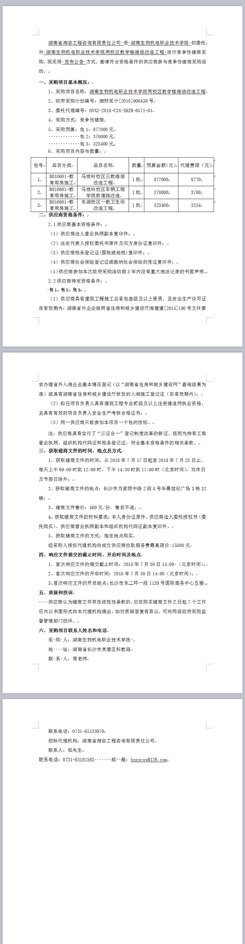 湖南生物機電職業技術學院兩校區教學樓維修改造工程磋商邀請公告