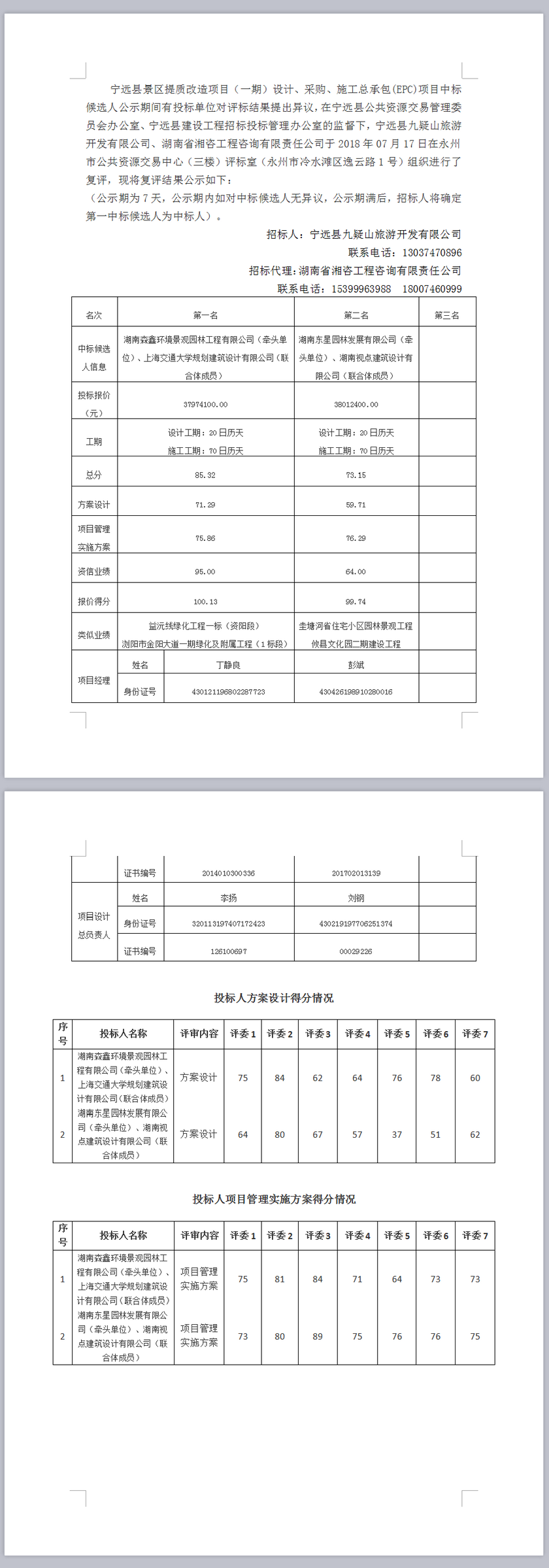 寧遠縣景區提質改造項目(一期)設計、采購、施工總承包(EPC)項目中標候選人復評結果公示