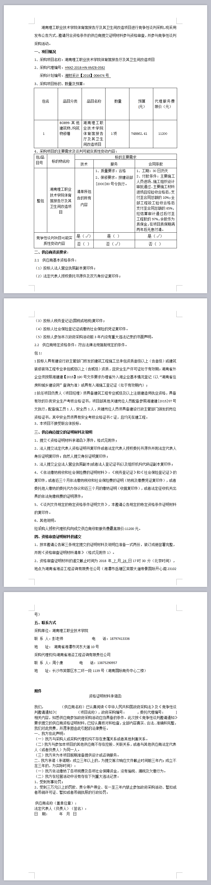 湖南理工職業技術學院體育館報告廳及其衛生間改造項目競爭性談判邀請公告
