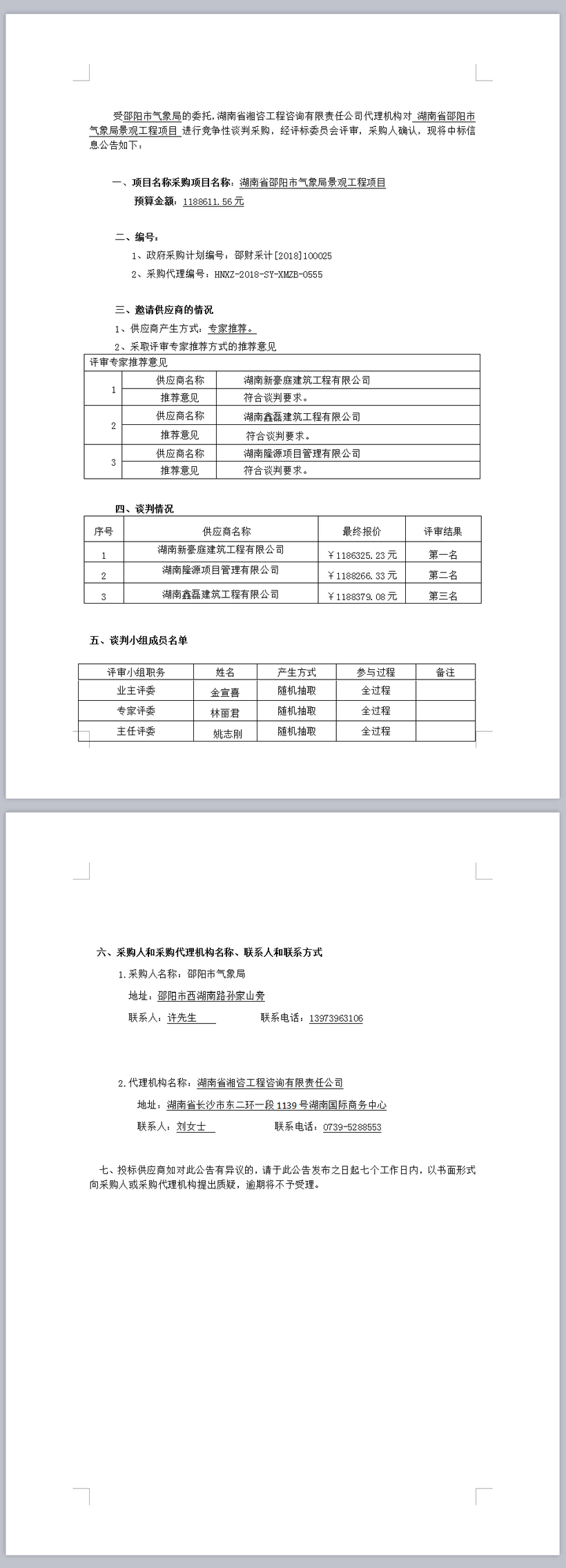 湖南省邵陽(yáng)市氣象局景觀工程項(xiàng)目競(jìng)爭(zhēng)性談判成交公告
