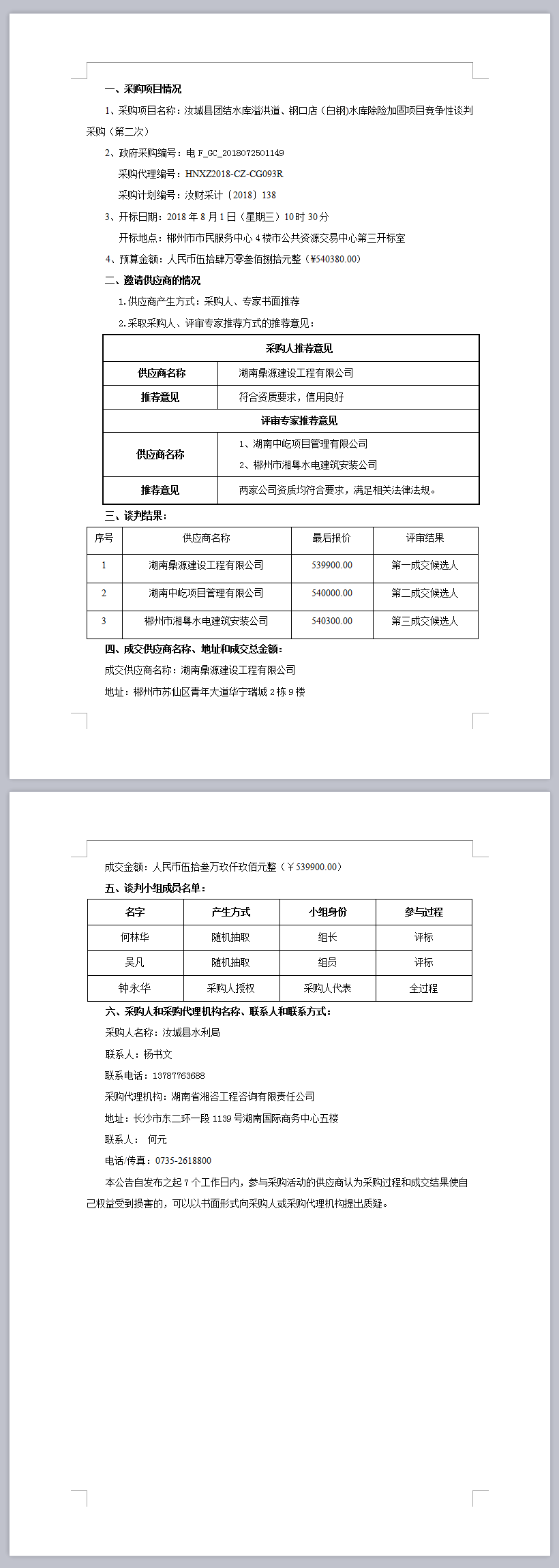 汝城縣團結水庫溢洪道、鋼口店(白鋼)水庫除險加固項目競爭性談判采購(第二次)成交公告