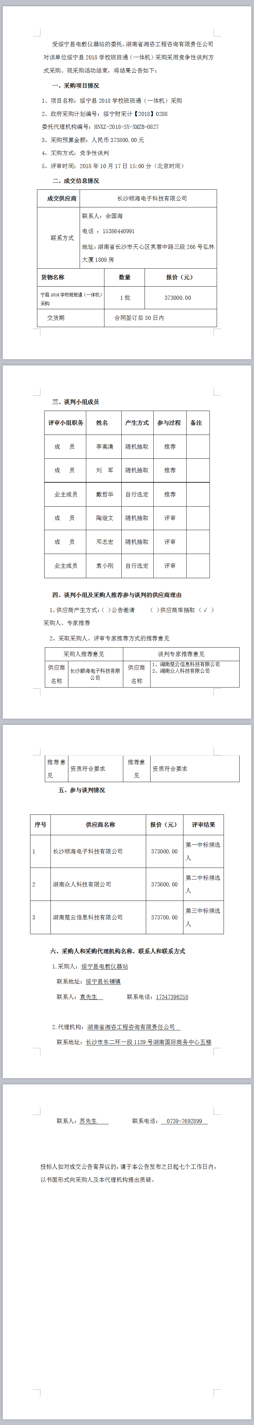 綏寧縣2018學(xué)校班班通(一體機)采購 談判成交公告