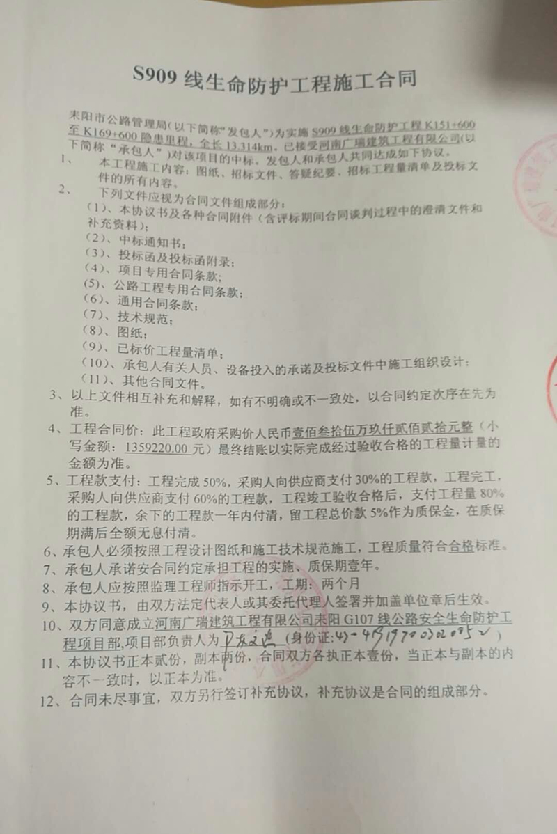 耒陽市S909線公路安全生命防護(hù)工程競爭性談判采購合同公告