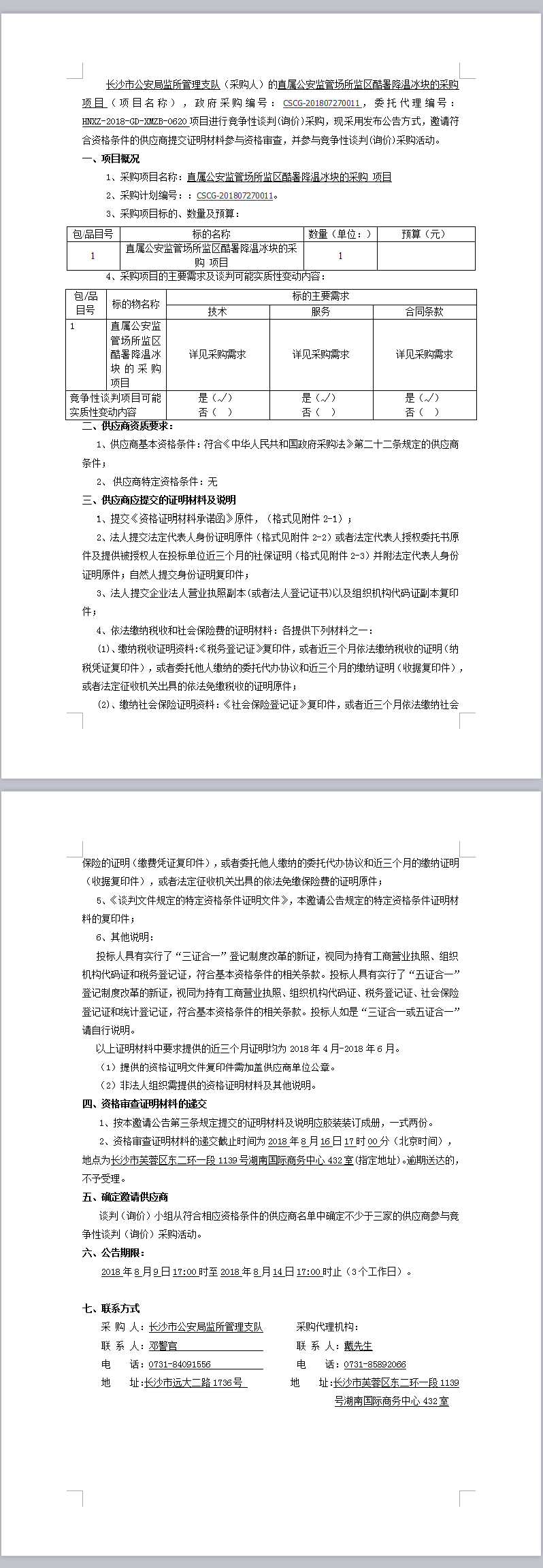 直屬公安監管場所監區酷暑降溫冰塊的采購項目競爭性談判邀請公告