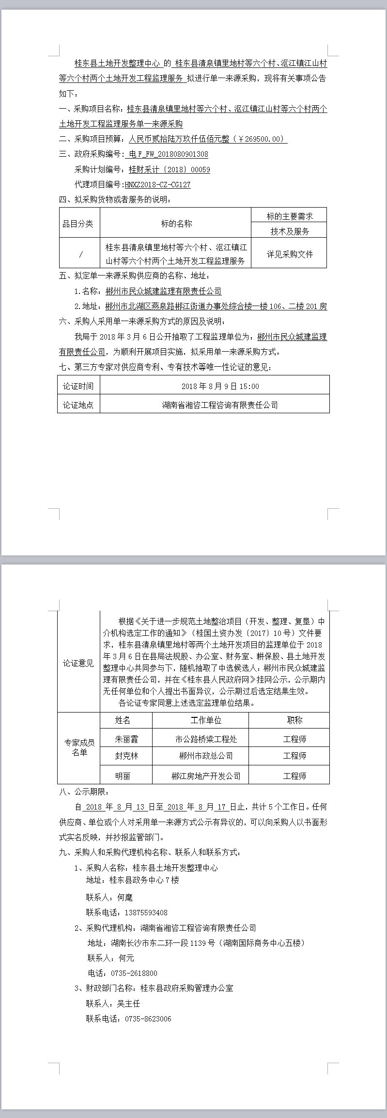 桂東縣清泉鎮(zhèn)里地村等六個村、漚江鎮(zhèn)江山村等六個村兩個土地開發(fā)工程監(jiān)理服務(wù)單一來源采購公示