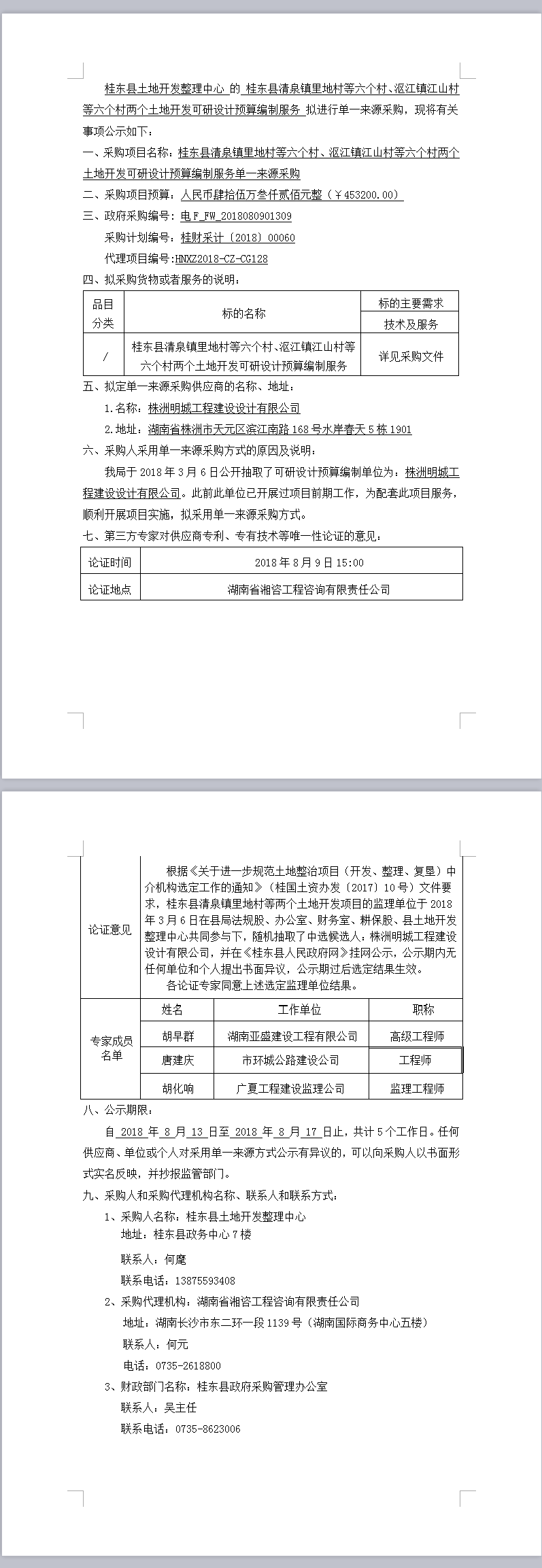 桂東縣清泉鎮里地村等六個村、漚江鎮江山村等六個村兩個土地開發可研設計預算編制服務單一來源采購公示