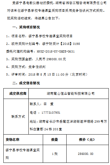 綏寧縣學(xué)校專遞課堂采購項(xiàng)目談判成交公告