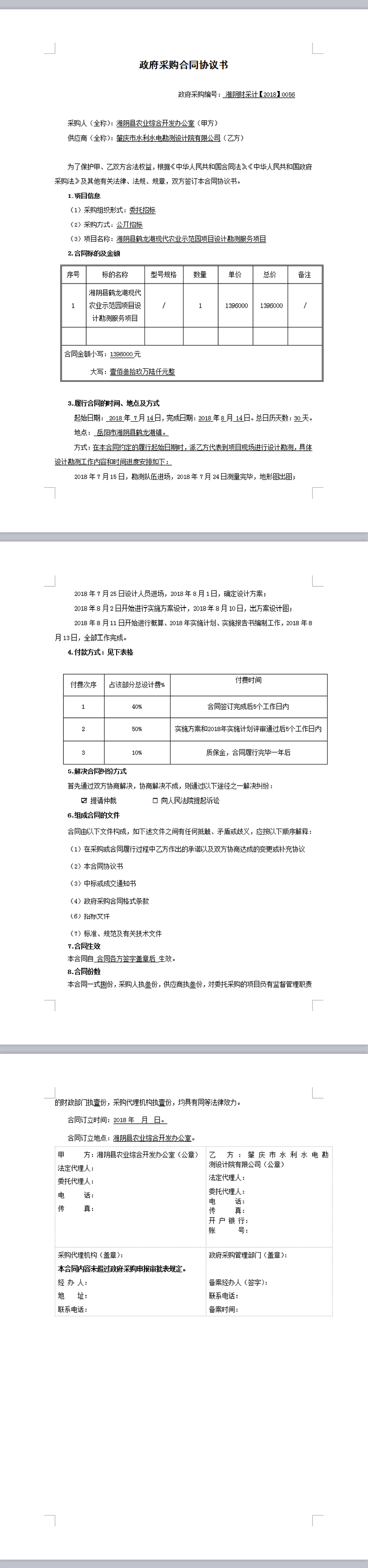 湘陰縣鶴龍湖現(xiàn)代農(nóng)業(yè)示范園項(xiàng)目設(shè)計(jì)勘測服務(wù)項(xiàng)目政府采購合同協(xié)議書
