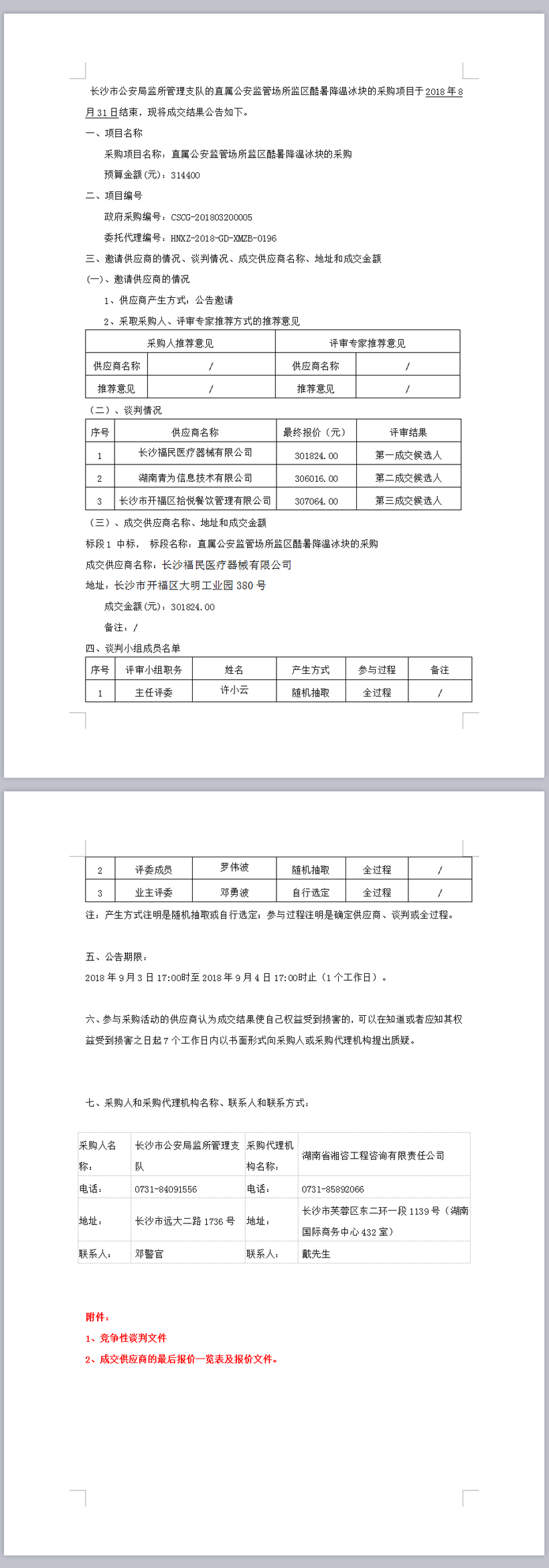 長(zhǎng)沙市公安局監(jiān)所管理支隊(duì)直屬公安監(jiān)管場(chǎng)所監(jiān)區(qū)酷暑降溫冰塊的采購(gòu)結(jié)果公告