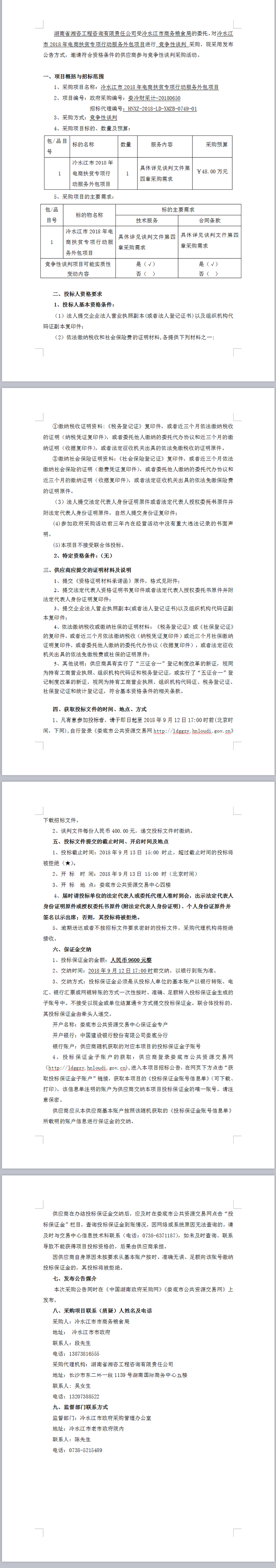 冷水江市2018年電商扶貧專項(xiàng)行動(dòng)服務(wù)外包項(xiàng)目競爭性談判公告