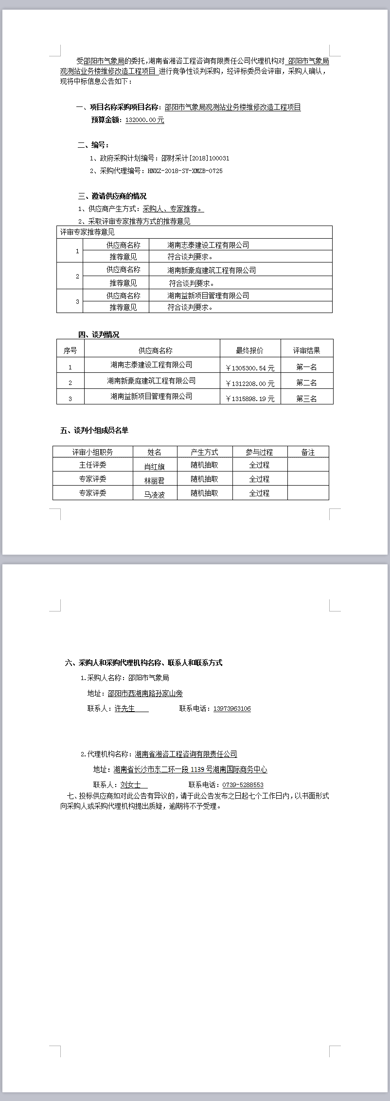邵陽市氣象局觀測(cè)站業(yè)務(wù)樓維修改造工程項(xiàng)目 競(jìng)爭(zhēng)性談判成交公告