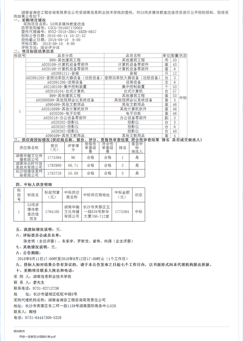 湖南信息職業技術學院53間多媒體教室改造結果公告