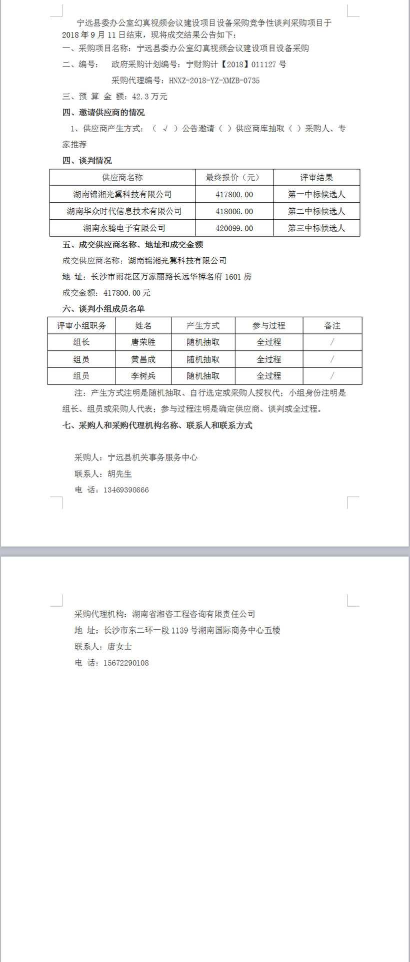 寧遠(yuǎn)縣委辦公室幻真視頻會議建設(shè)項目設(shè)備采購競爭性談判成交公告
