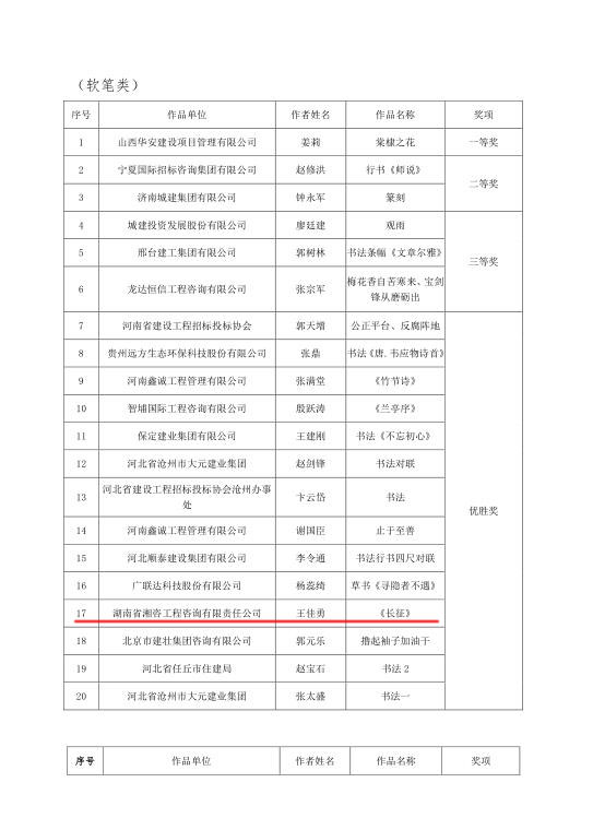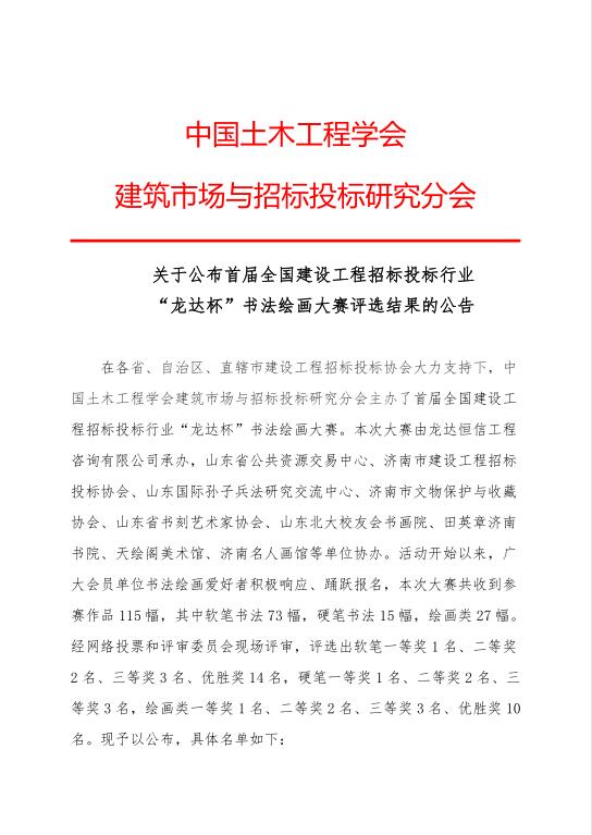 【喜訊】熱烈祝賀我司王佳勇在首屆全國建設工程招標投標行業?“龍達杯”書法繪畫大賽獲得軟筆類優勝獎