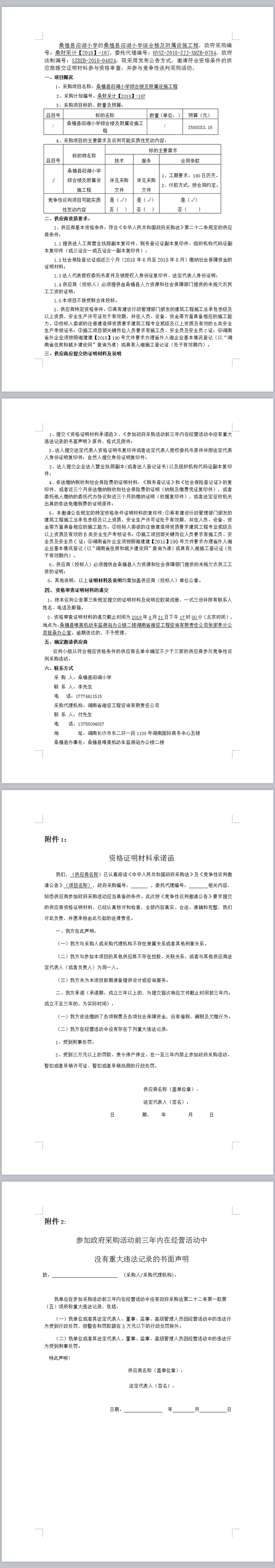 桑植縣汨湖小學綜合樓及附屬設施工程談判公告