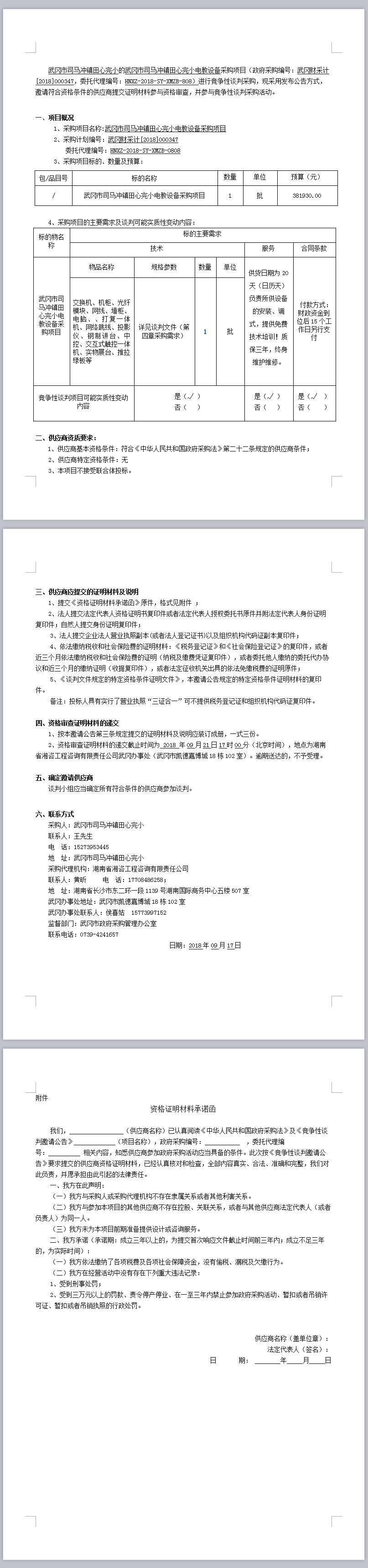 武岡市司馬沖鎮田心完小電教設備采購項目 競爭性談判邀請公告