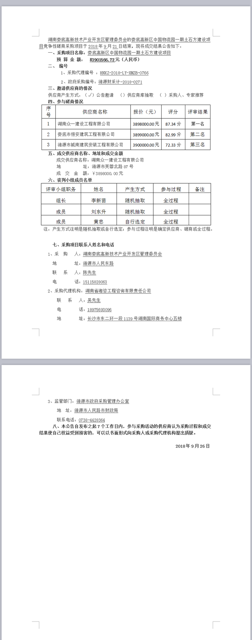 婁底高新區(qū)中國物流園一期土石方建設(shè)項目競爭性磋商成交結(jié)果公告