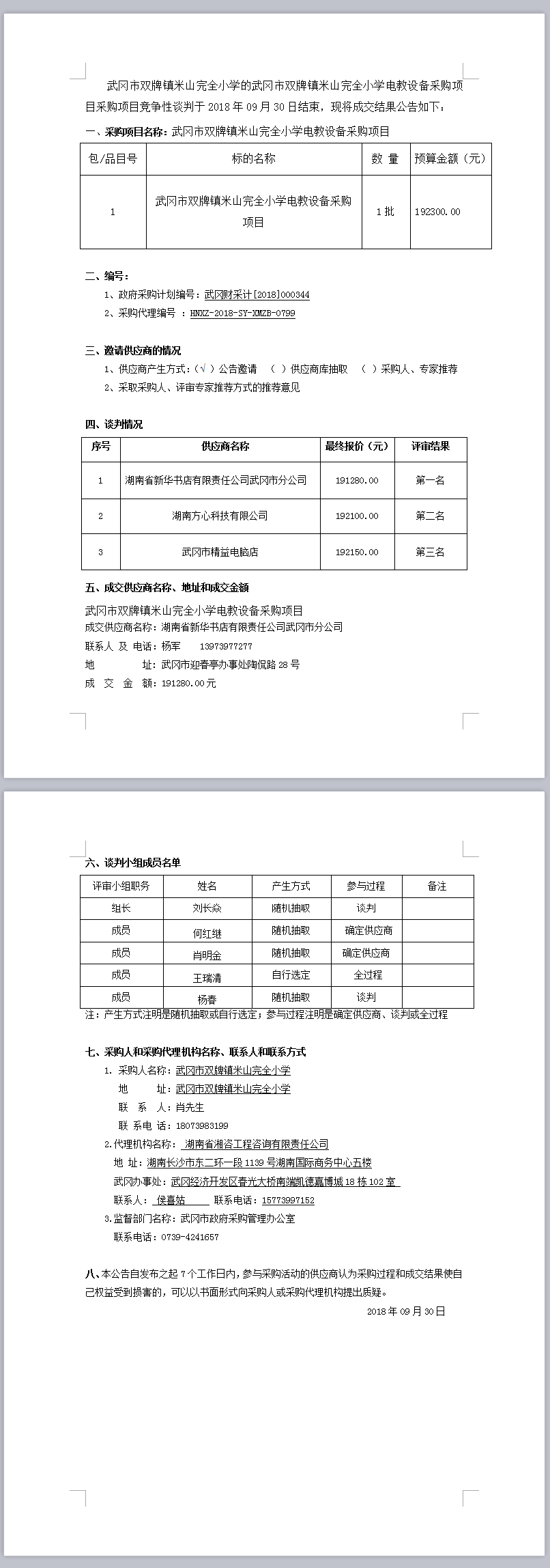武岡市雙牌鎮(zhèn)米山完全小學(xué)電教設(shè)備采購項目競爭性談判成交結(jié)果公告