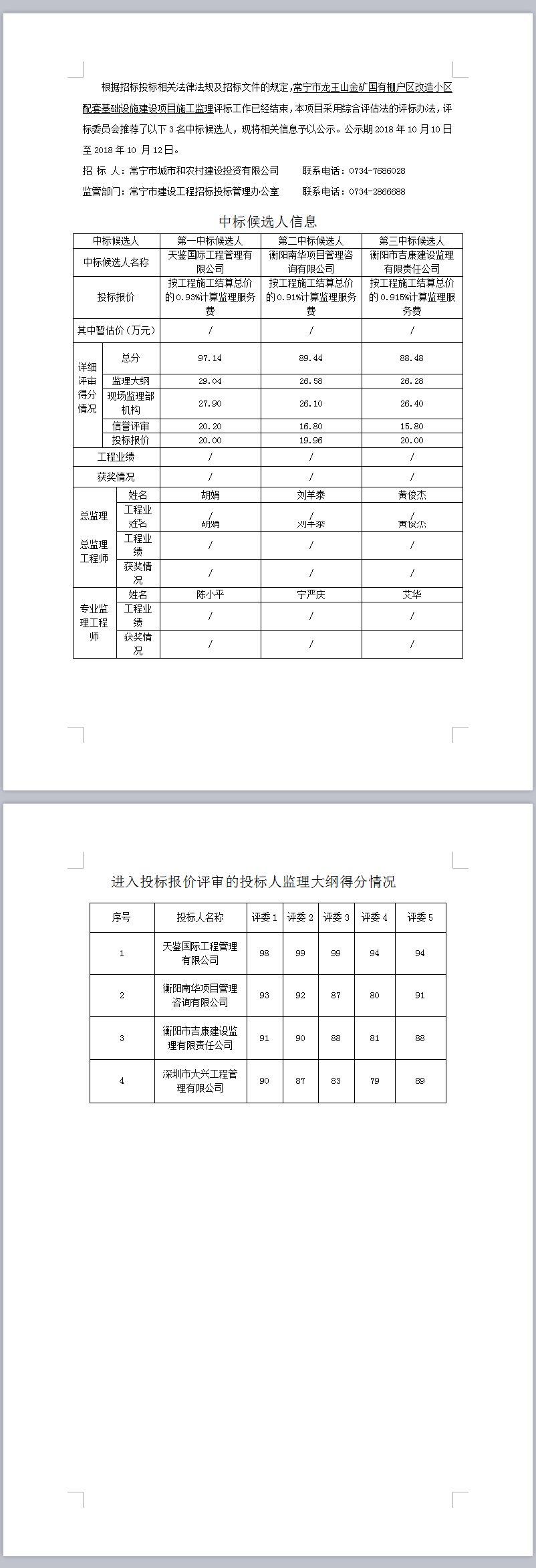 常寧市龍王山金礦國有棚戶區(qū)改造小區(qū)配套基礎(chǔ)設(shè)施建設(shè)項目施工監(jiān)理中標(biāo)候選人公示