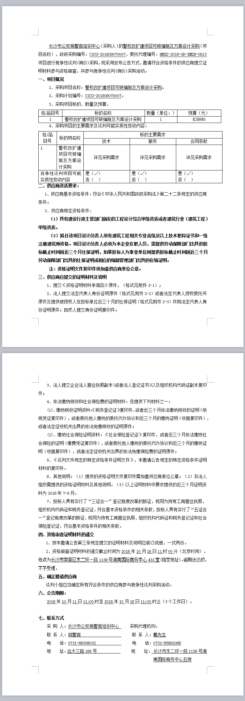 警校改擴建項目可研編制及方案設計采購競爭性談判邀請公告