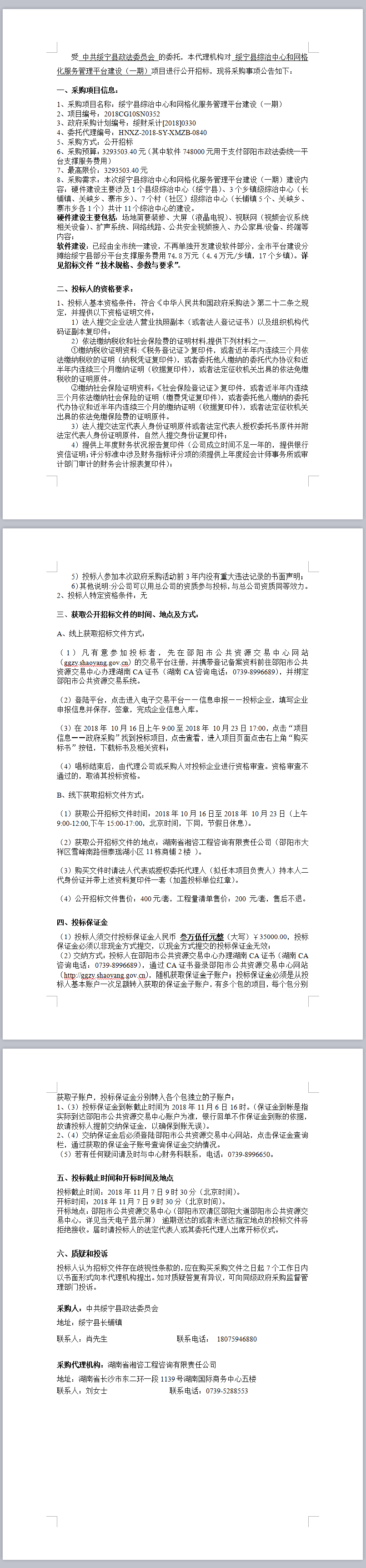 綏寧縣綜治中心和網格化服務管理平臺建設(一期)項目 招標公告