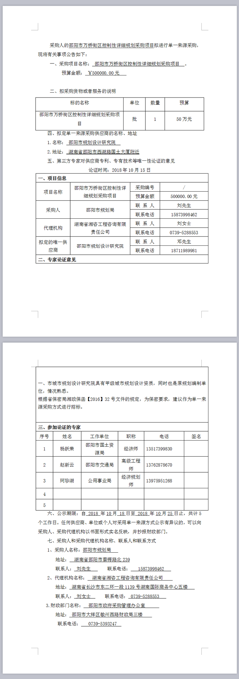 邵陽市萬橋街區控制性詳細規劃采購項目 單一來源論證公示