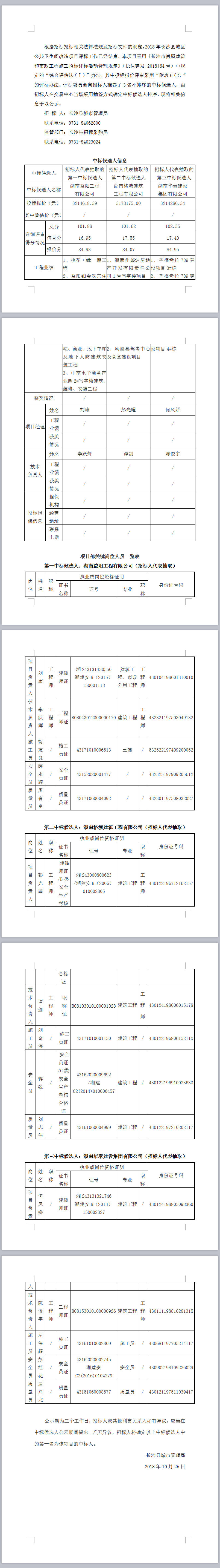 2018年長沙縣城區公共衛生間改造項目中標候選人公示