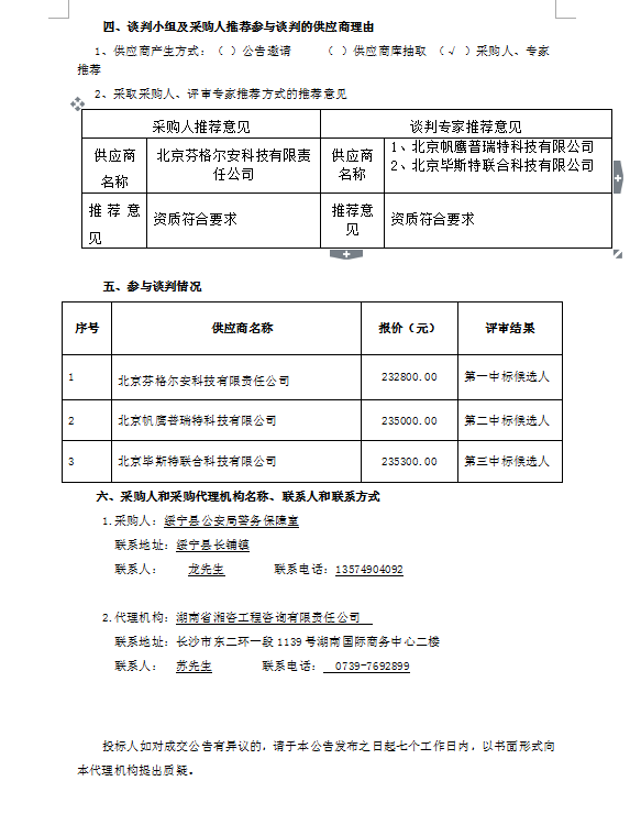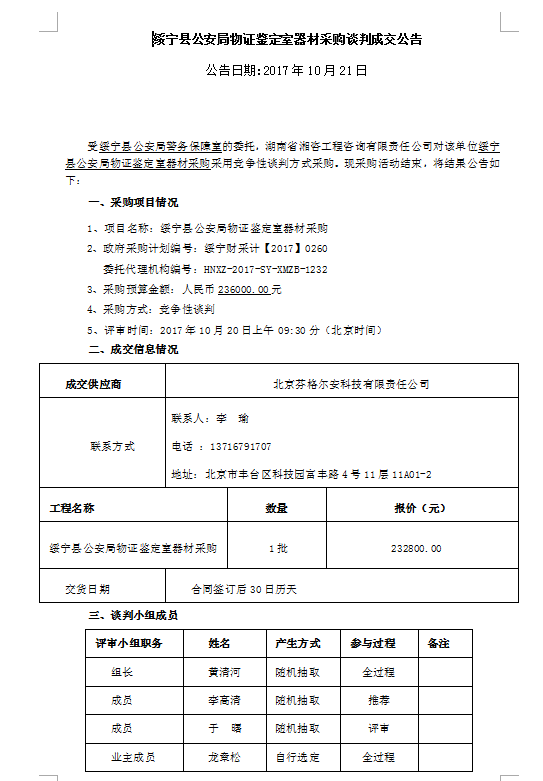 綏寧縣公安局物證鑒定室器材采購談判成交公告