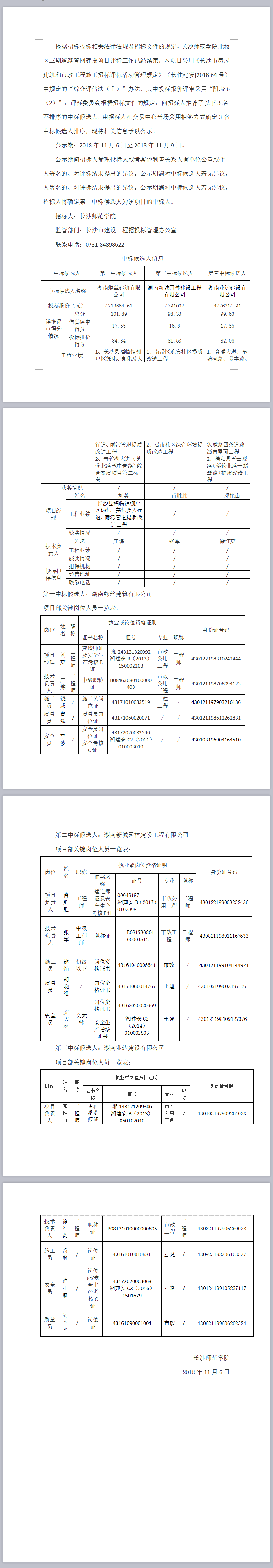 長沙師范學(xué)院北校區(qū)三期道路管網(wǎng)建設(shè)項(xiàng)目中標(biāo)候選人公示