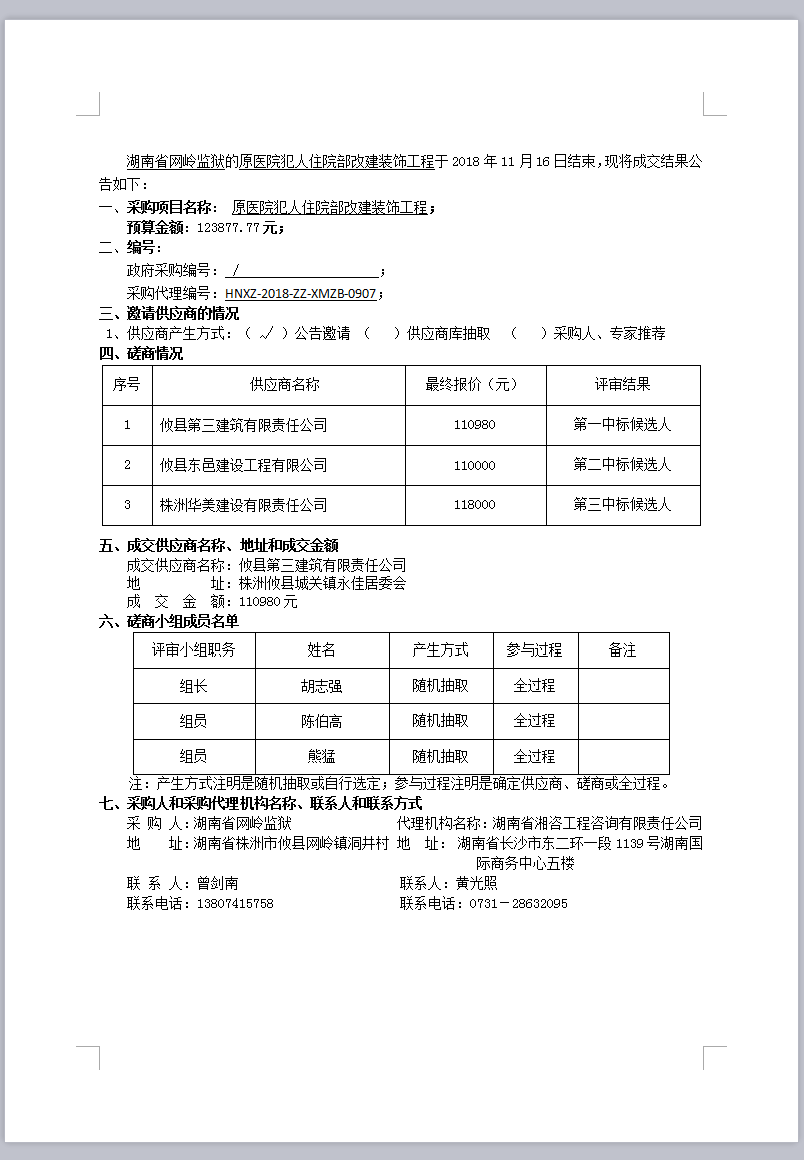 原醫(yī)院犯人住院部改建裝飾工程成交結(jié)果公告