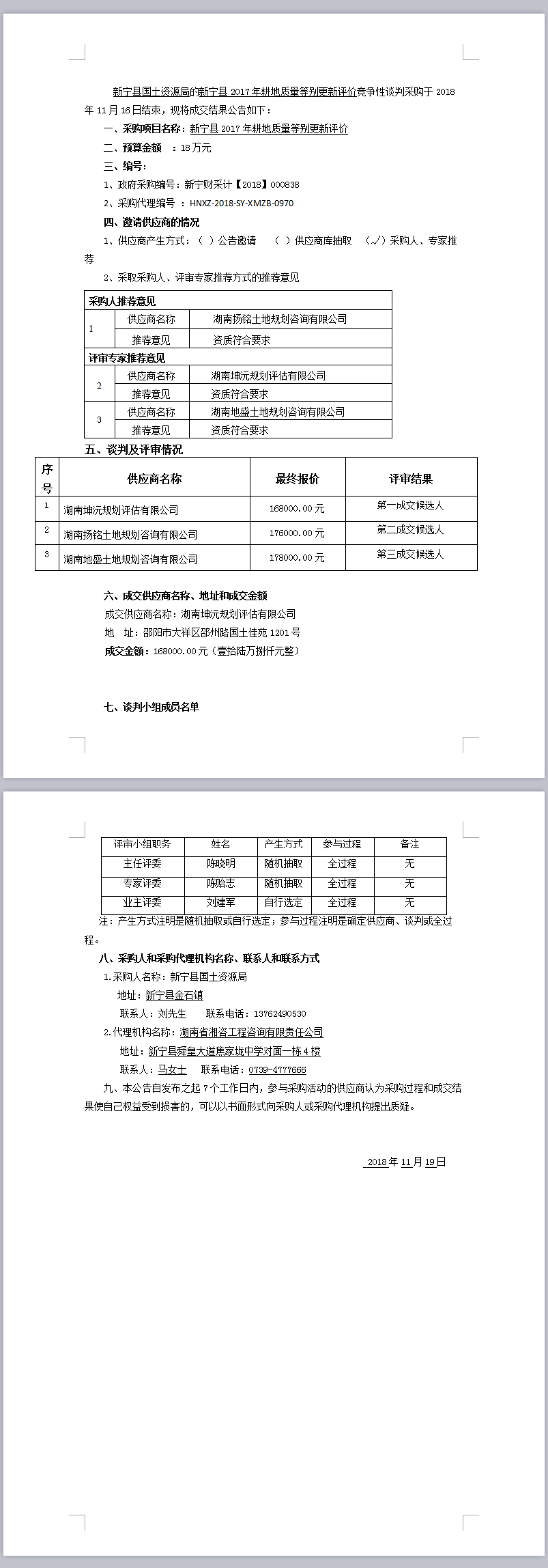 新寧縣2017年耕地質(zhì)量等別更新評(píng)價(jià) 競(jìng)爭(zhēng)性談判成交結(jié)果公告