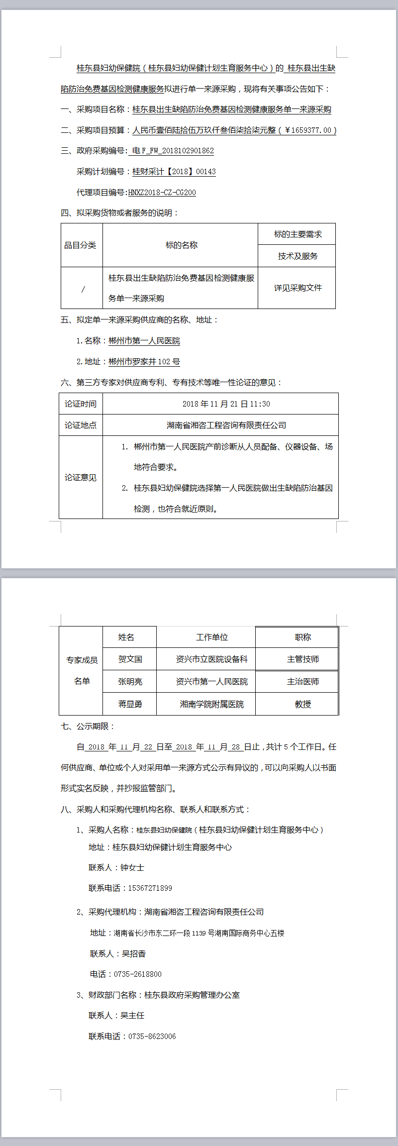 桂東縣出生缺陷防治免費基因檢測健康服務 單一來源采購公示