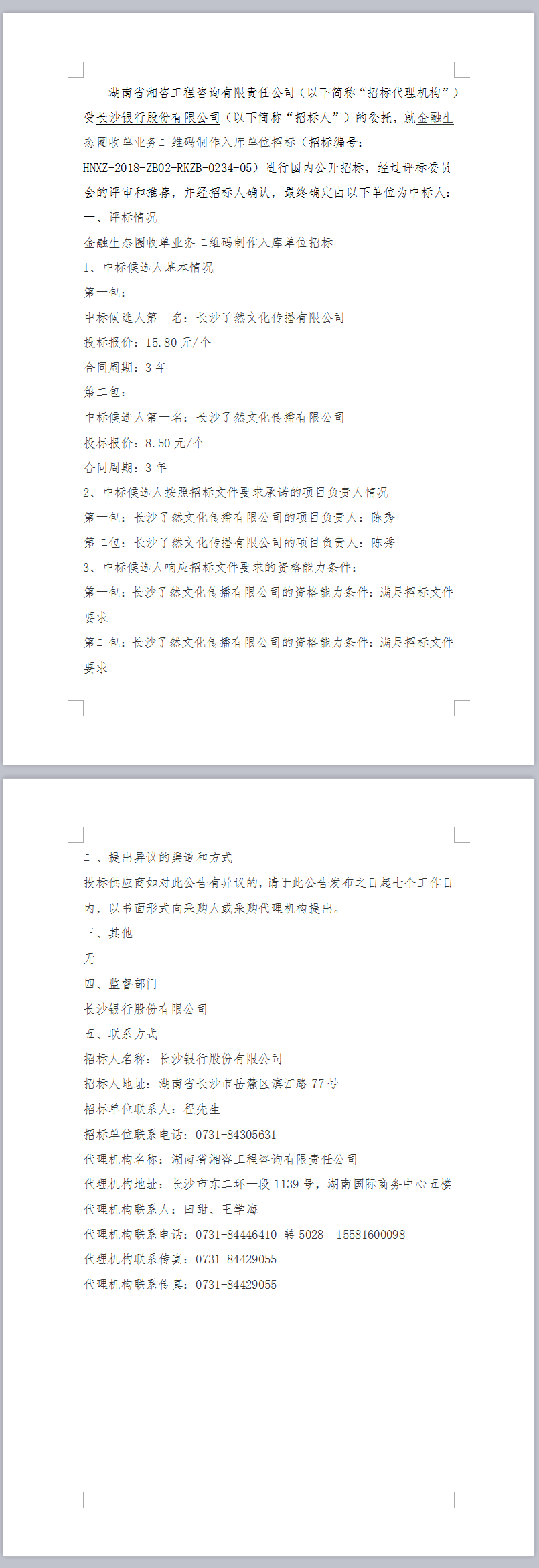 金融生態圈收單業務二維碼制作入庫單位招標中標結果公告