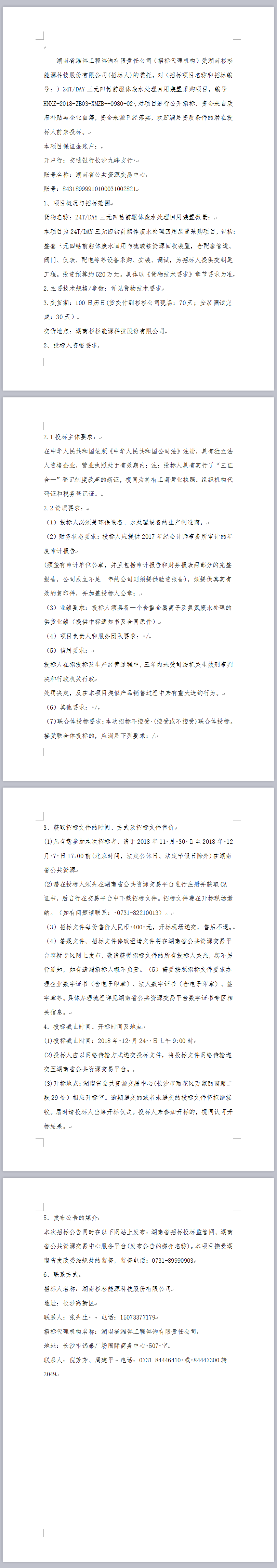 24T/DAY三元四鈷前驅體廢水處理回用裝置采購項目招標公告