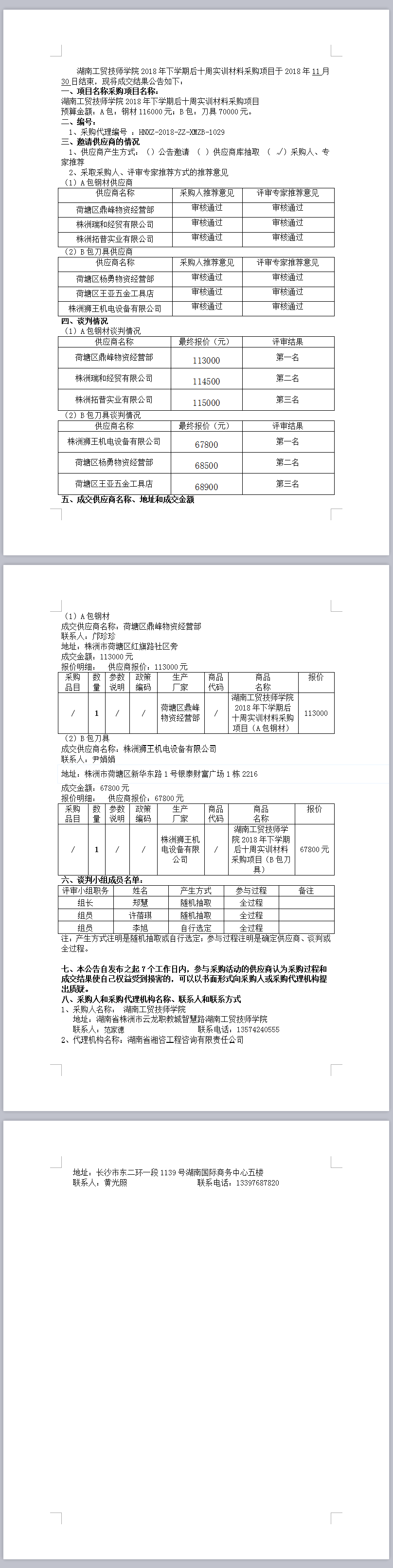 湖南工貿(mào)技師學(xué)院2018年下學(xué)期后十周實(shí)訓(xùn)材料采購(gòu)項(xiàng)目競(jìng)爭(zhēng)性談判成交公告