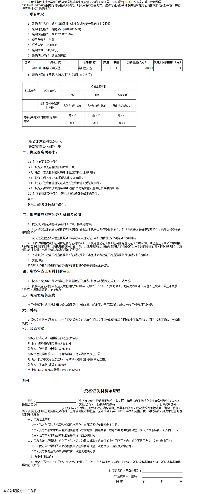 湖南鐵道職業技術學院城軌信號基礎實訓室設備項目競爭性談判邀請公告