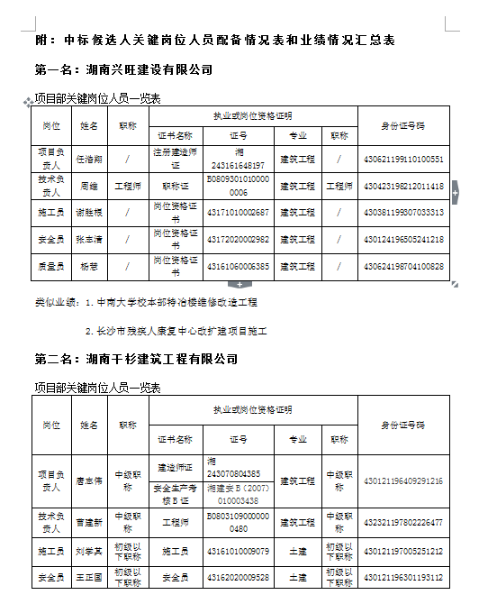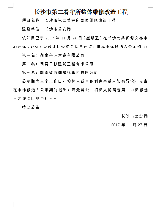 長沙市第二看守所整體維修改造工程中標(biāo)候選人公示