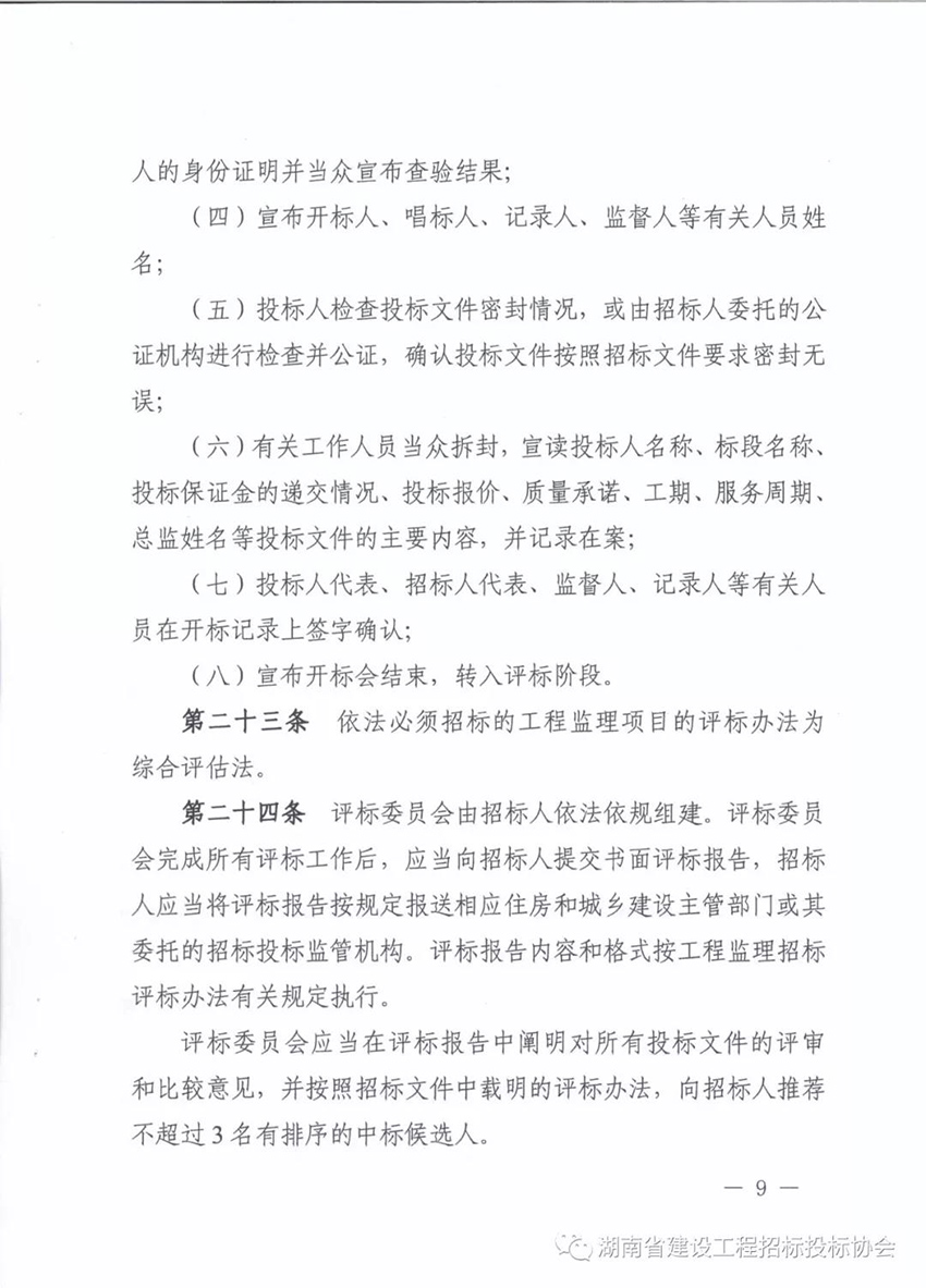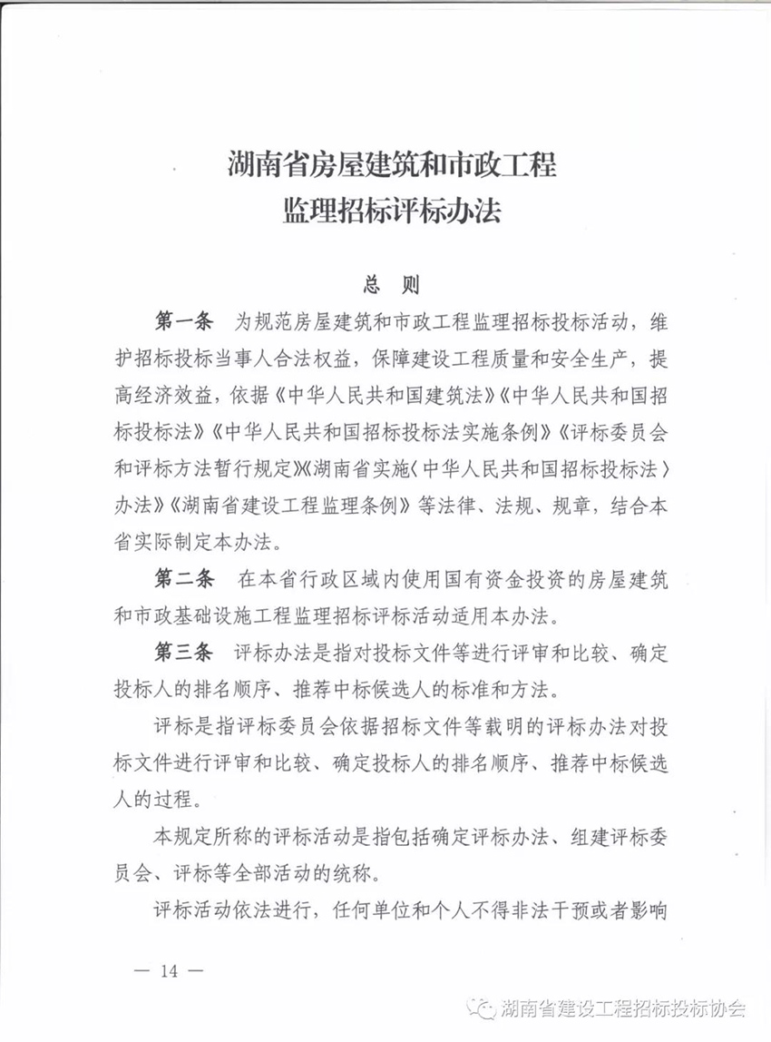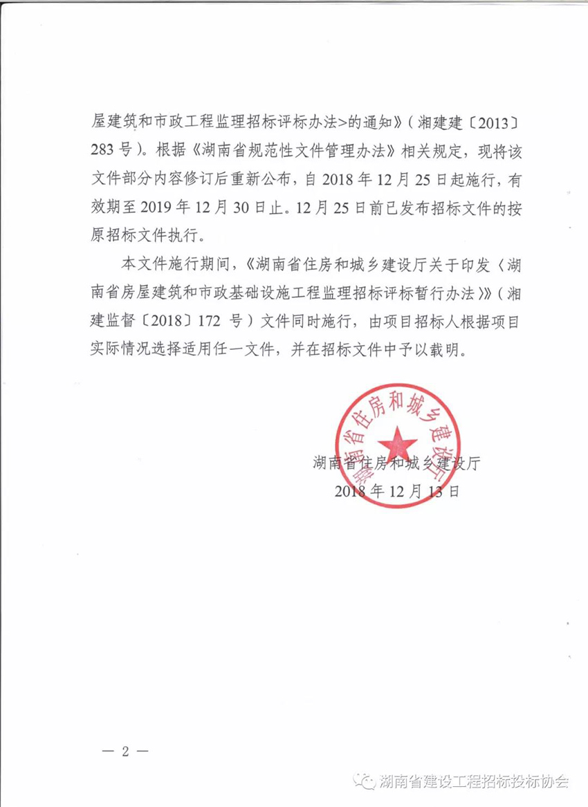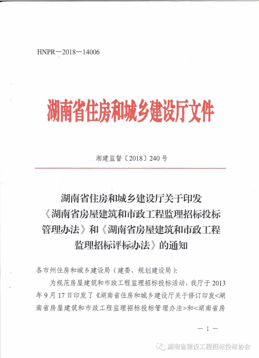 關于印發《湖南省房屋建筑和市政工程監理招標投標管理辦法》和《湖南省房屋建筑和市政工程監理招標評標辦法》的通知湘建監督【2018】240號