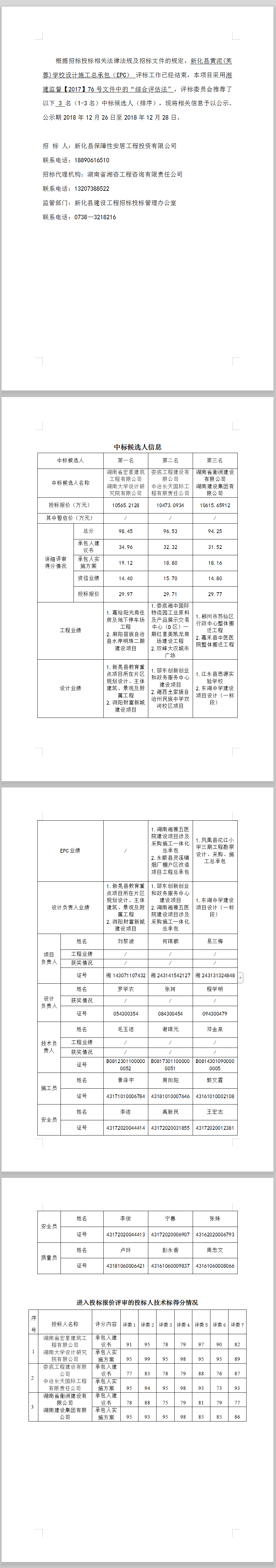 新化縣黃泥(芙蓉)學校設(shè)計施工總承包(EPC)中標候選人公示