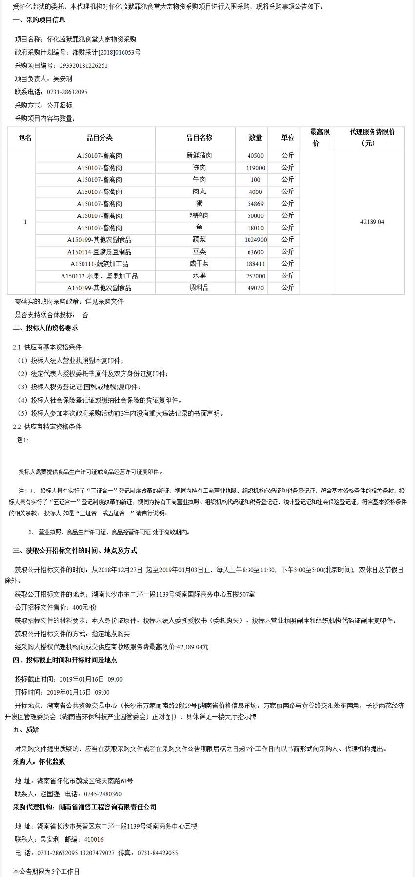 懷化監(jiān)獄罪犯食堂大宗物資采購項目入圍采購公開招標(biāo)公告